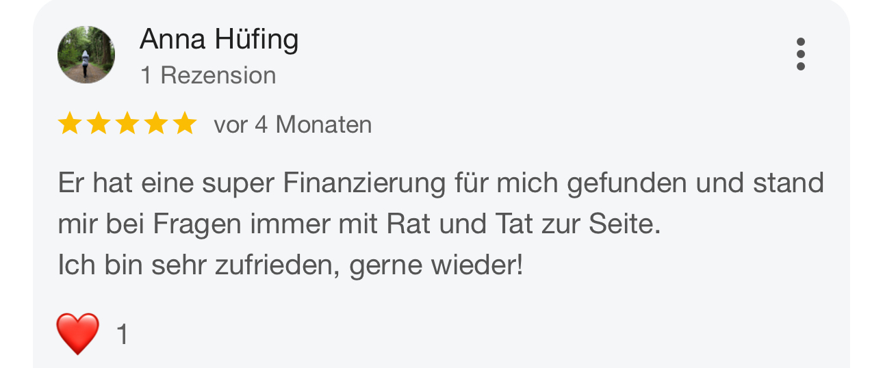 Ich vergleiche für Sie bankenunabhängig und finde die Finanzierung, die zu Ihnen passt - schnell, transparent und ohne Fachchinesisch.